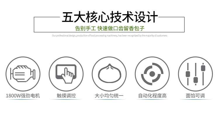XZ-87型全自動包子機(jī)體積小重量輕,不銹鋼的外殼及食品接觸面,外觀精美,花紋更多,設(shè)計先進(jìn),生產(chǎn)性能穩(wěn)定精準(zhǔn),結(jié)構(gòu)簡單,操作方便??缮a(chǎn)各種肉包、肉菜包、菜包、小籠包、湯包、水晶包、圓饅頭、奶黃包、豆沙包、叉燒包、南瓜餅等幾十種包餡制品。