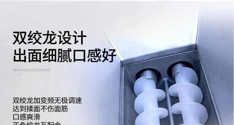 ◆ 出面機頭均采用國內(nèi)先進技術(shù)制造,使機頭真正達到存面少、不傷面筋、不斷面筋、不會有對半裂開口,并可以直接調(diào)節(jié)面皮的薄厚。