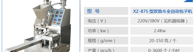 型號(hào): | XZ-87S型雙餡斗全自動(dòng)包子機(jī) |