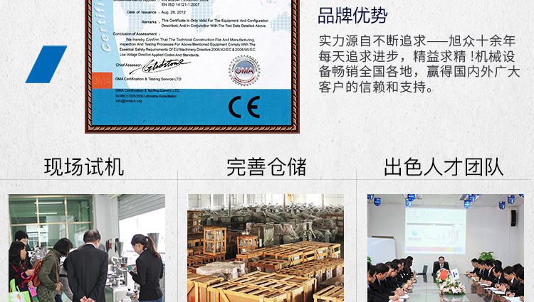 安徽旭眾智能科技有限公司是一家集科研開(kāi)發(fā),生產(chǎn)設(shè)計(jì),營(yíng)銷(xiāo)服務(wù)為一體的現(xiàn)代化生產(chǎn)企業(yè)?,F(xiàn)代化生產(chǎn)車(chē)間,精湛制造技術(shù),所產(chǎn)機(jī)械歷經(jīng)市場(chǎng)重重考驗(yàn),不斷贏得海內(nèi)外客戶(hù)的贊譽(yù)。