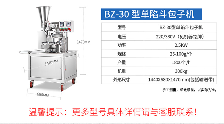 旭眾牌XZ-86全自動(dòng)包子機(jī)體積小重量輕,外殼及接觸食品部分均由不銹鋼制造,外觀精美耐用;采用三變頻無(wú)極變速調(diào)控,生產(chǎn)性能穩(wěn)定精準(zhǔn)。設(shè)計(jì)先進(jìn),結(jié)構(gòu)簡(jiǎn)單,操作方便。獨(dú)有的三大特色: