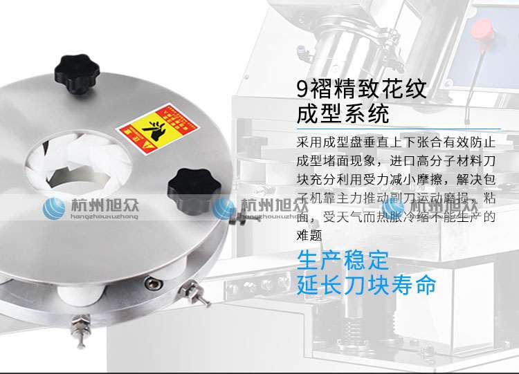 ◆包子成型系統(tǒng) :采用成型盤(pán)垂直上下移動(dòng),配合刀塊張合徹底防止以前包子機(jī)做大包子成型堵面的現(xiàn)象。9塊進(jìn)口高分子材料刀塊充分利用力學(xué)原理均衡受力減小摩擦,徹底解決了其它包子機(jī)成型刀塊靠一塊主刀推動(dòng)其它8塊副刀運(yùn)動(dòng)易磨損,刀夾面粘面,易受天氣變化而熱脹冷縮不能正常生產(chǎn)的的難題。生產(chǎn)穩(wěn)定大大延長(zhǎng)成型刀塊使用時(shí)間。