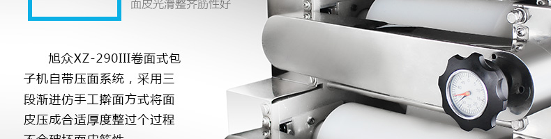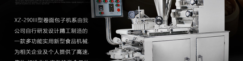 旭眾牌XZ-290III型卷面式包子機是由本公司自主設計研發(fā),精工打造的一款專業(yè)仿手工生產制作各種包餡類食品的高效實用型機械設備,是一款生產肉包、菜包、小籠包、豆沙包、奶黃包等多種包餡類產品的多功能實用新型食品機。