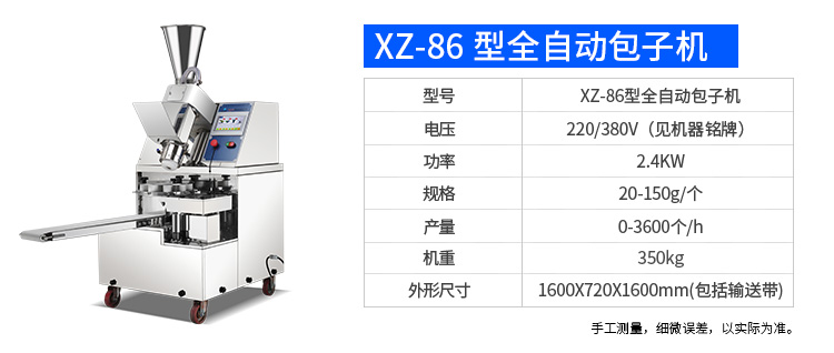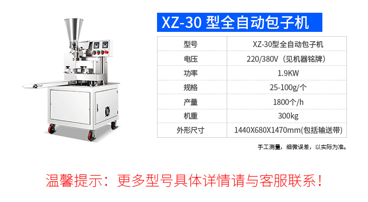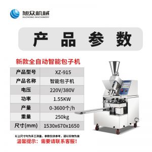 旭眾牌XZ-915全自動包子機體積小重量輕,外殼及接觸食品部分均由不銹鋼制造,外觀精美耐用;采用三變頻無極變速調(diào)控,生產(chǎn)性能穩(wěn)定。設(shè)計先進,結(jié)構(gòu)簡單,操作方便。包子機三大特色: