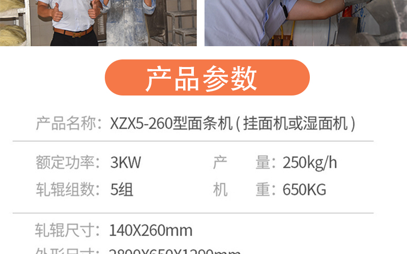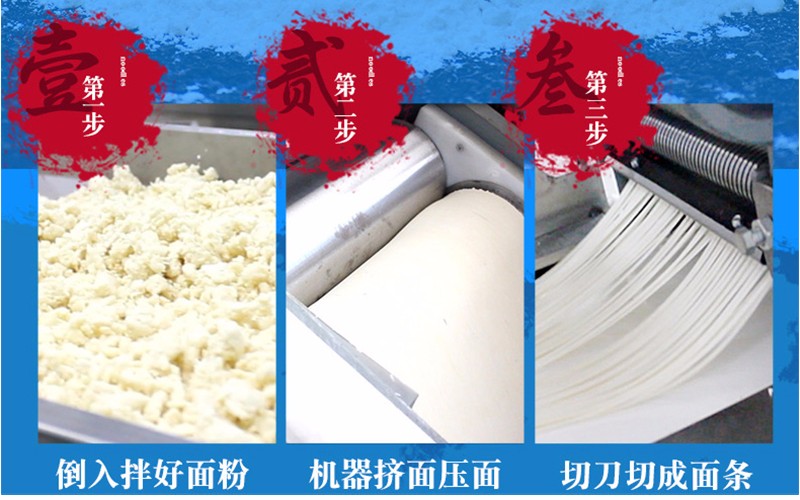 XZ面條機(掛面/濕面),XZ5-260自動折皮,雙面撒粉,卷皮,切面,本機配有三個變頻器控制,增強了可操作性,三個減速電機驅(qū)動,動力強勁。