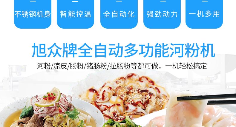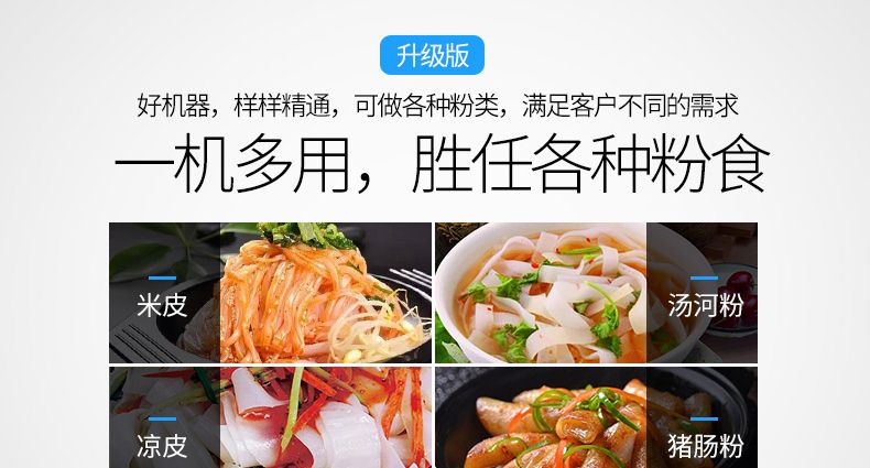 ◆一機(jī)多用:多功能河粉機(jī)器可生產(chǎn)制作河粉、腸粉、涼皮、面皮、米皮、粉皮、切粉、粿條等。