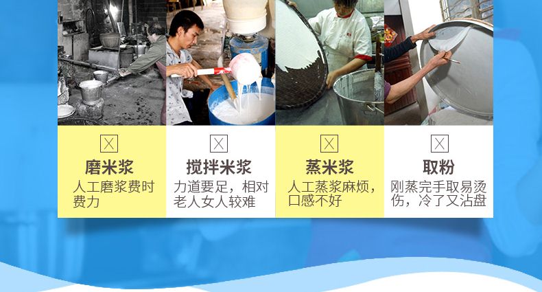 ◆高產(chǎn)高效:1公斤大米可產(chǎn)2.8~3公斤的河粉,粉條耐性佳、鮮嫩潔白、柔軟滑爽;