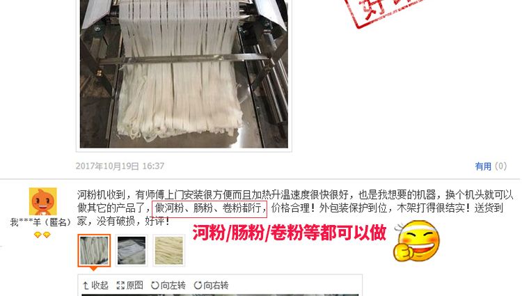 ◆ 用高效節(jié)能河粉機(jī)生產(chǎn)的河粉,完整保全了大米的營養(yǎng)成分。