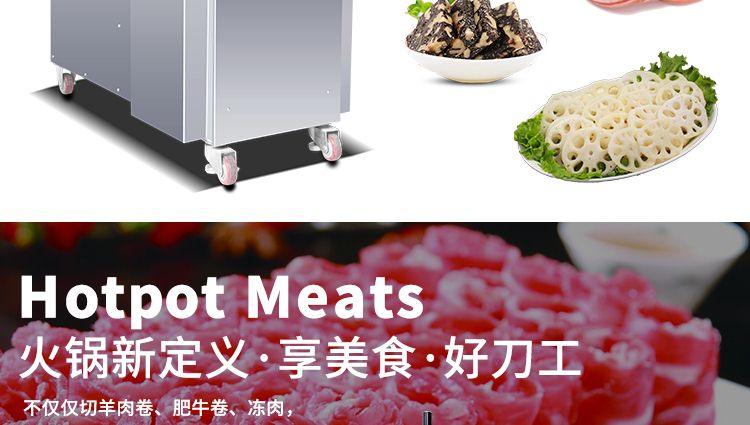 2.可同時切制2卷(4卷)肉料或2卷(4卷)肥牛,適合大中小型肉片加工企業(yè)使用