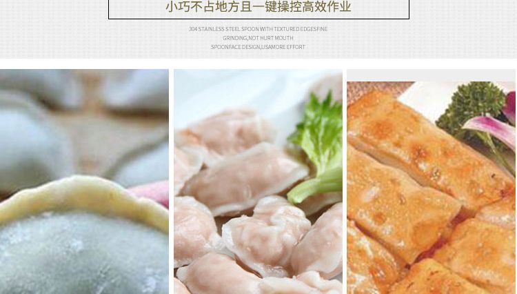 備注 | 更換機(jī)頭可做春卷、餛飩、火鍋水餃、珍珠水餃、咖喱餃子、花邊餃子、鍋貼餃子 |