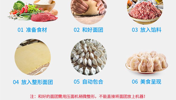 ?采用多道壓面輥壓面,壓面效果優(yōu)異,壓出的面皮筋道,進(jìn)一步提高所包出的餃子口感。