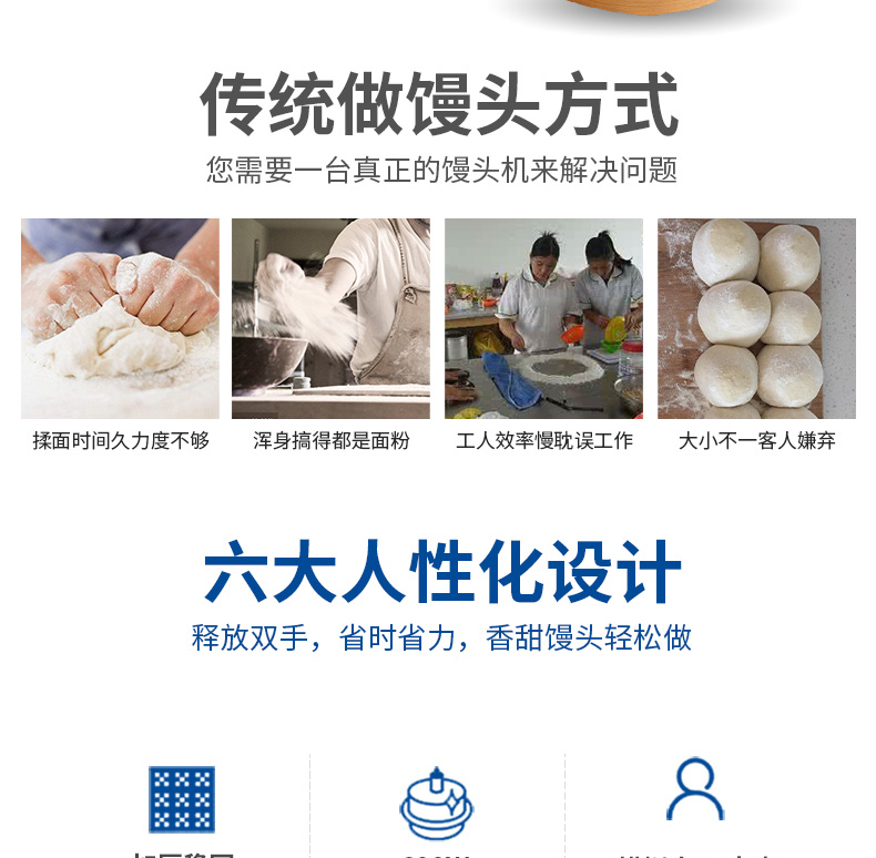 本機(jī)對面粉質(zhì)量要求不高,適用于各種工作場所,工作效率相當(dāng)于12-18個工人同時手工制作饅頭,真正的低投入、高收效、節(jié)省資源。