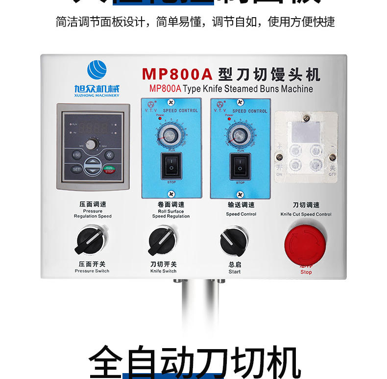 旭眾MP800A型刀切饅頭機(jī)采用高品質(zhì)微電腦控制,人性化的控制面板,控制準(zhǔn)確可靠,操作簡單,可生產(chǎn)各種刀切饅頭、花卷等面食產(chǎn)品。