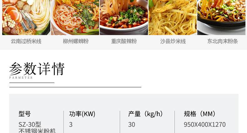 SZ-30不銹鋼米粉機(jī),可生產(chǎn)米粉、米線、桂林米粉、過橋米線、年糕、糍粑等產(chǎn)品。各種形狀都可生產(chǎn)(圓、扁),加工食品外表光滑,厚薄、寬窄、粗細(xì)均勻可調(diào),筋軟適度,有彈性,口感柔軟、味道純正。