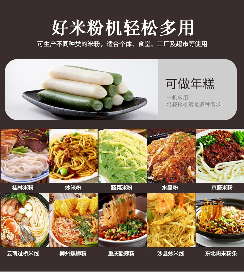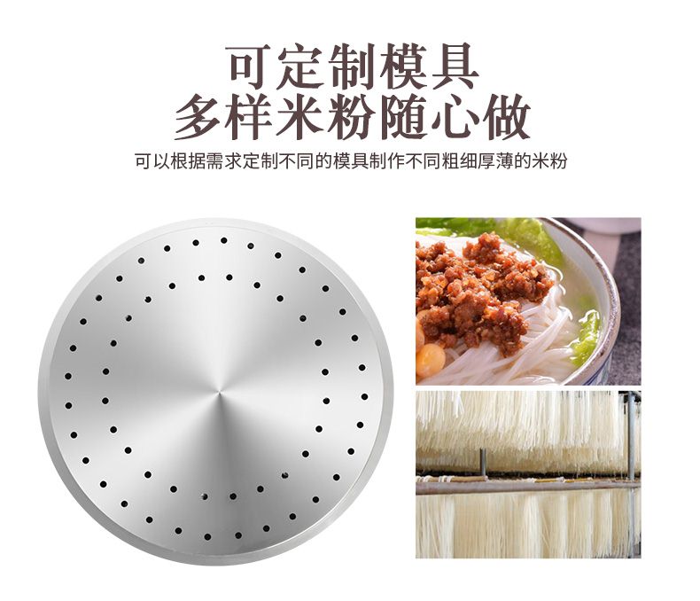 ◆ 米粉機(jī)生產(chǎn)多樣性可生產(chǎn)米粉、米線、粉絲、粉條、年糕、玉米面條、各種雜糧粉絲、各種面條、雜糧面條、彩色面條以及以紅薯、玉米、大豆、蠶豆等制成淀粉為原料的等多種食品而且每種食品厚薄、粗細(xì)等規(guī)格可根據(jù)需要任意調(diào)整。