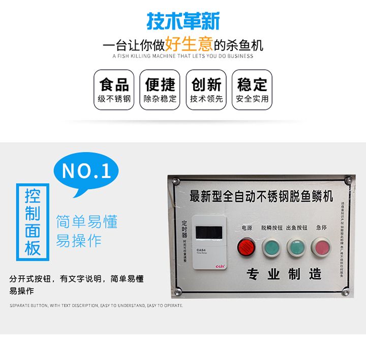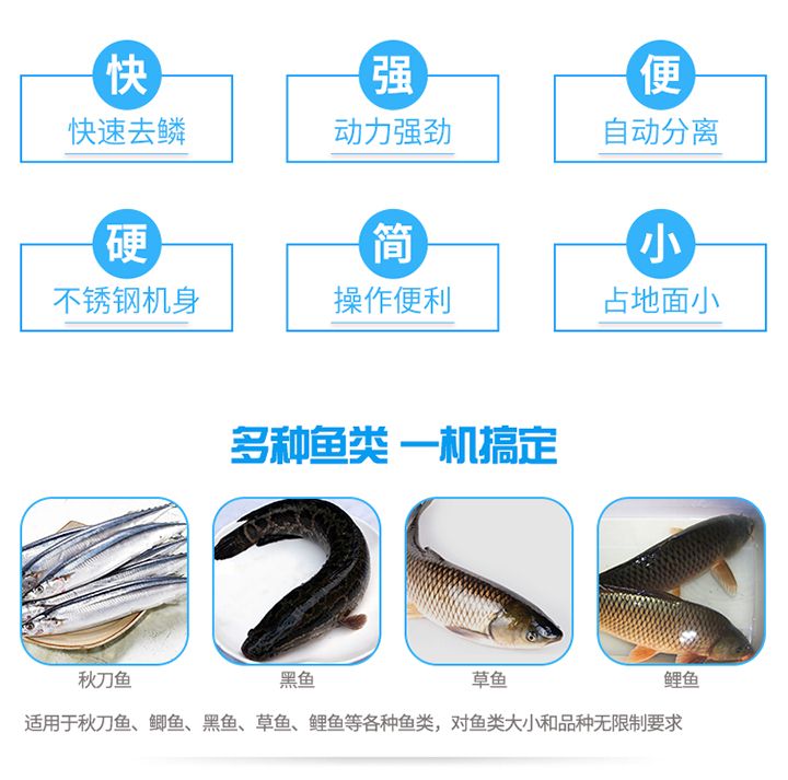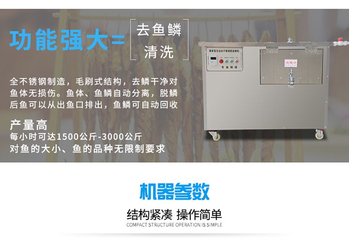 3.功能強大,直接實現(xiàn)去魚鱗和殺魚的工藝,生產效率高,產量大。