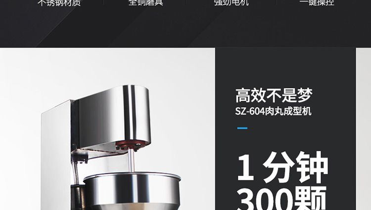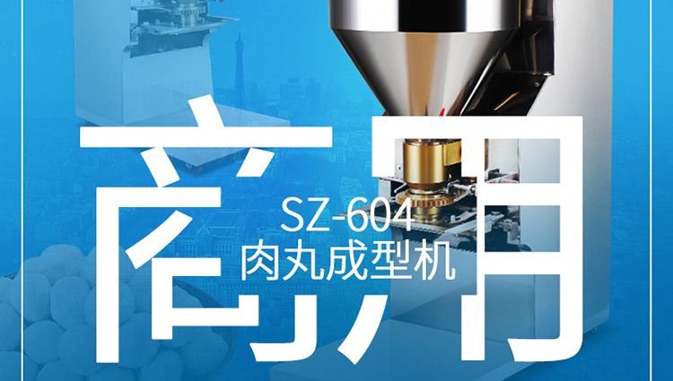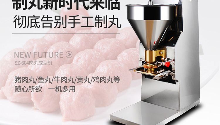 SZ-604肉丸成型機(jī),肉丸成型機(jī)采用不銹鋼材質(zhì),丸子直徑可達(dá)15-35mm,可以制作各類爽脆,有韌性、有彈性的豬肉丸、魚丸、牛肉丸、貢丸、雞肉丸等