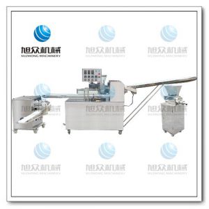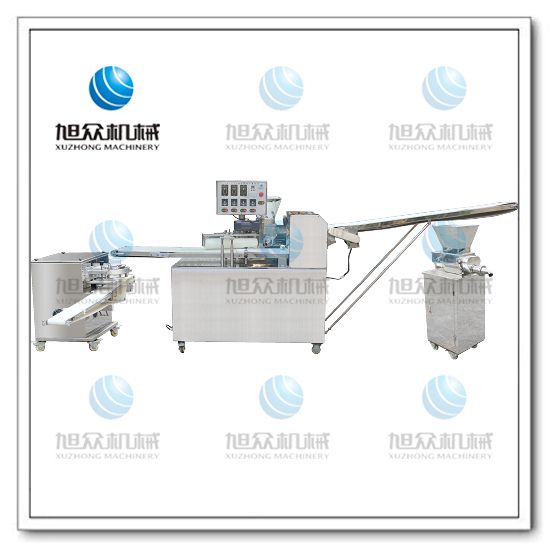 旭眾牌SZ-09A多功能單段酥餅機(jī)是經(jīng)面輪將面皮壓成合適厚度,由自動出餡機(jī)將餡料充填至面皮上,經(jīng)卷面輪將面皮卷成圓柱狀,后以成型刀具切割成球狀,或是長條狀餅胚,再經(jīng)過打餅成形,整個成形過程不會破壞面皮筋性。