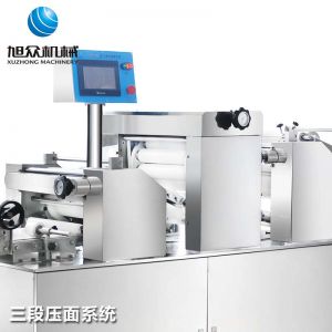 旭眾牌XZ-15C三道搟面酥餅機(jī)是我公司仿手工制作面食產(chǎn)品的機(jī)型,占地面積小,重量輕,它吸收國內(nèi)傳統(tǒng)手工制作技術(shù),即運用搟面杖壓面和打擊面團(tuán),以保證高面筋性和面帶的密度,并綜合考慮面食的口感而研發(fā)。