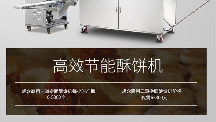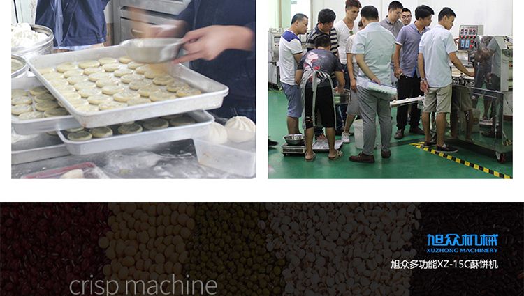 XZ-15C三道搟面酥餅機(jī),仿手工制作面食產(chǎn)品的機(jī)型,占地面積小,重量輕,運用搟面杖壓面和打擊面團(tuán),以保證高面筋性和面帶的密度,并綜合考慮面食的口感而研發(fā)??缮a(chǎn)東北糖酥餅,東北大香酥餅,蘇式月餅,芝麻餅,鮮花餅,老婆餅。購機(jī)免費提供工藝技術(shù)