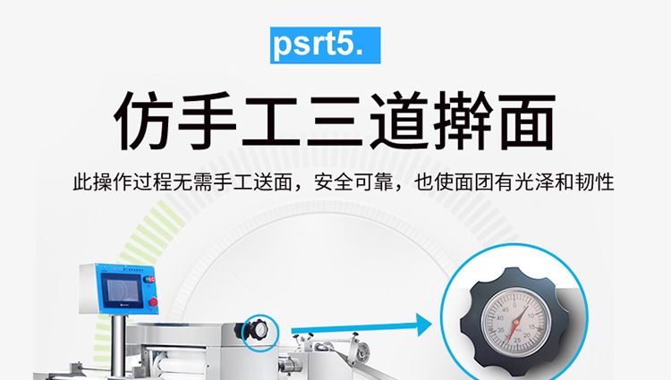 ?生產(chǎn)速度快,效率高,生產(chǎn)流程流暢,各環(huán)節(jié)都輔以電控設(shè)備控制,不會出現(xiàn)堵面,破酥等現(xiàn)象;