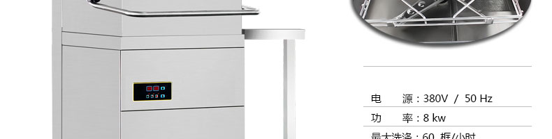 旭眾牌XZ-60揭蓋式洗碗機(jī)板材采用標(biāo)1.2mm厚不銹鋼板,主骨架均為國標(biāo)1.5不銹鋼管,底座鋼板為6mm,進(jìn)出口傳動軸均為304#不銹鋼材質(zhì);水泵為意大利進(jìn)口水泵(國標(biāo)15米揚(yáng)程)不銹鋼食品泵,電器采用知名品牌正泰電器,篩網(wǎng)為激光沖孔。揭蓋式洗碗機(jī)主要針對小碗、小碟、杯子類餐具。