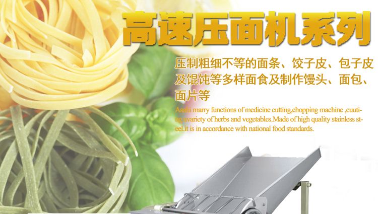 高速壓面機系列,本機壓面、揉面一機兩用,用于制作面條、云吞皮、糕點、面點等食品,生產(chǎn)的產(chǎn)品韌性大、耐煮、不易斷,適合于賓館、飯店、食堂、面包廠及各類面點加工單位或個體商戶使用。