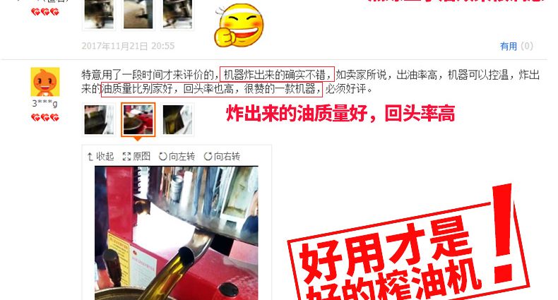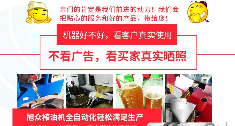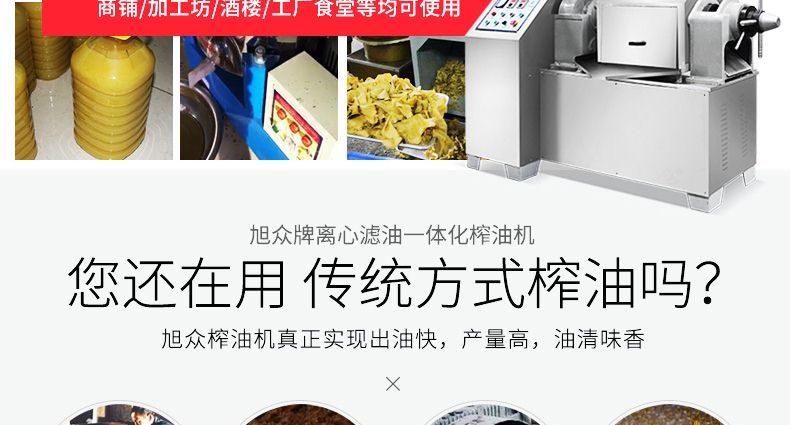 重要提示:離心濾油機(jī)建議配XZ-LL100(離心濾油機(jī)需要加鹽水濾油,該機(jī)通過高速旋轉(zhuǎn)產(chǎn)生離心力,使比重不同的液體與固體自動分離,從而達(dá)到油渣分離。),正壓濾油機(jī)建議配XZ-ZL2(正壓濾油是與空氣壓縮機(jī)組合,如果給客戶配正壓濾油機(jī)需要買個空壓機(jī)。正壓濾油油桶內(nèi)的毛油處于密閉狀態(tài)時,壓縮空氣送入桶內(nèi)形成一定壓力,使其強(qiáng)行通過濾布。)榨油機(jī)如有榨較硬的物料如山茶籽一定要用518以上而且是-2的設(shè)備(客戶榨山茶籽和硬物料推薦用-2設(shè)備,如果榨花生菜籽等高油較軟的物料請推薦-4設(shè)備)。