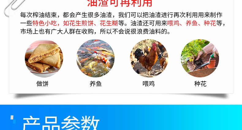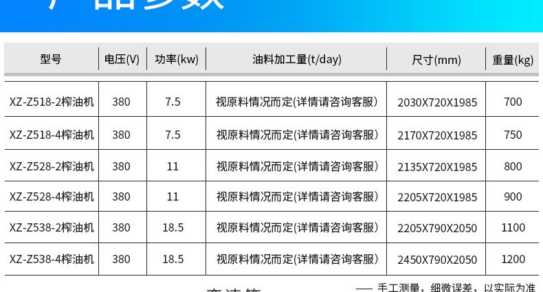 適合壓榨油料 | 芝麻、菜籽、葵花籽、花生、大豆、等多種原料 |