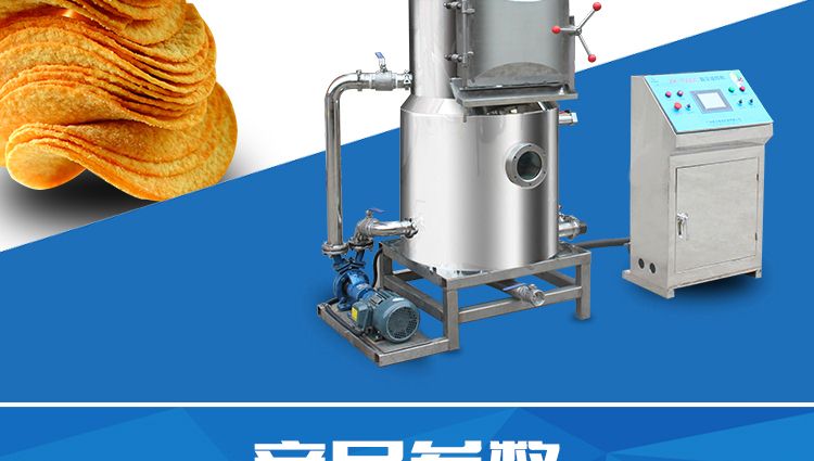 ●降低油脂劣變程度:炸用油的劣化包括氧化、聚合、熱分解,而以水或水蒸汽與油接觸產(chǎn)生水解為主。在真空油炸過程中,油處于負壓狀態(tài),溶于油脂中的氣體很快大量逸出,產(chǎn)生的水蒸汽壓力較小,而且油炸溫度低,因此,油脂的劣化程度大大降低。