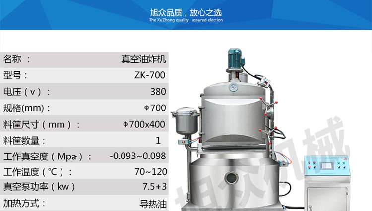 ZK-700真空油炸機(jī),適用于水果類、蔬菜類、干果類、水產(chǎn)品機(jī)畜禽肉類等。自動(dòng)控制溫度,無(wú)過(guò)熱、無(wú)過(guò)壓,確保產(chǎn)品質(zhì)量和安全生產(chǎn)。